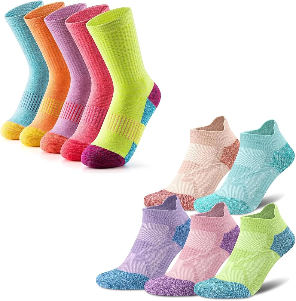 جوارب مبطنة للمشي لمسافات طويلة - هذه الجوارب الرياضية سميكة عند الكعب وأخمص القدمين لامتصاص الصدمات وتقليل التعب أثناء المشي لمسافات طويلة أو التدريب أو ركوب الدراجات أو اللياقة البدنية أو الرياضة أو الجري أو المشي. تساعد البطانة الإضافية أيضًا على منع الإصابة وزيادة الراحة.
