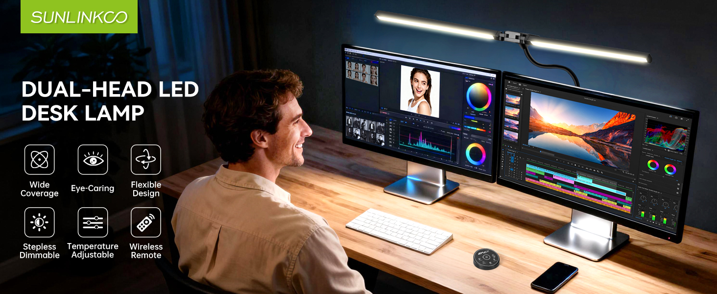 [تأثير إضاءة واسع وقابل للتخصيص]: قم بترقية بيئة العمل الخاصة بك باستخدام مصباح المكتب هذا، فهو يتميز برؤوس مصباح مزدوجة يمكن تمديدها حتى 32.8 بوصة، مما يوفر تغطية إضاءة واسعة بعرض 71 بوصة؛ تتميز إضاءة طاولة الكمبيوتر بتعتيم مستمر (10%-100%) ودرجات حرارة اللون من الأجواء الدافئة (3000 كلفن) إلى تركيز ضوء النهار (5700 كلفن)، مما يخلق إضاءة موحدة وقابلة للتعديل لغرفة الدراسة والمكتب المنزلي وورش العمل والاستوديو ومتجر الإصلاح وصالون الأظافر، إلخ.