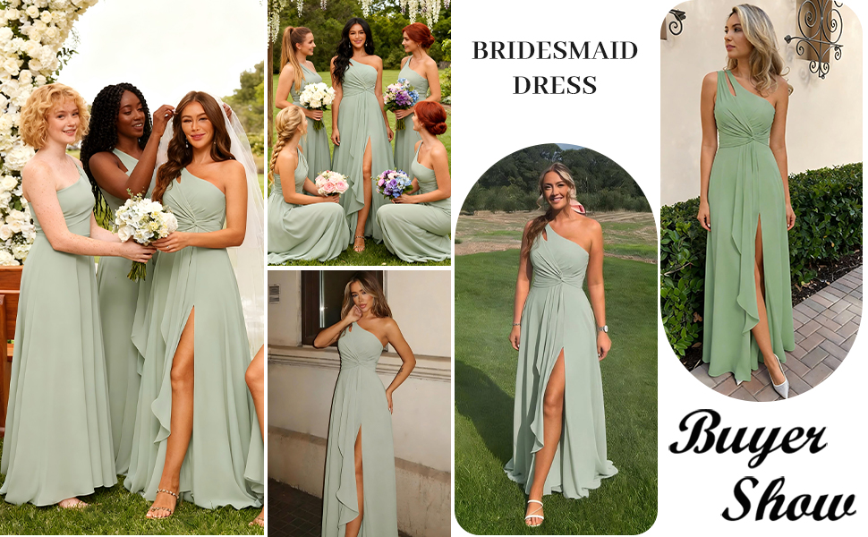 الميزات: فساتين وصيفة العروس طويلة من الشيفون طويلة مع فتحة 2026، فساتين سهرة رسمية بكتف واحد، فستان مشد طويل للنساء، فستان ضيوف زفاف على شكل حرف A للنساء، فساتين حفلات مسائية مشد مع ثنيات، فساتين رسمية بخصر مكشكش للسيدات، فساتين سهرة رسمية، فستان طويل بفتحة جانبية للحفلات الراقصة