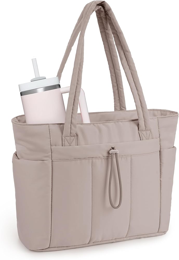 Wandering Nature Puffer Tote Bag for Women, Teacher Bag for Work, Large Tumbler Pocket, 15.6 Laptop Sleeve, Nurse, Office Professionals