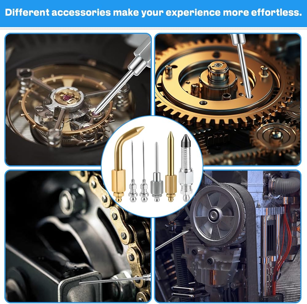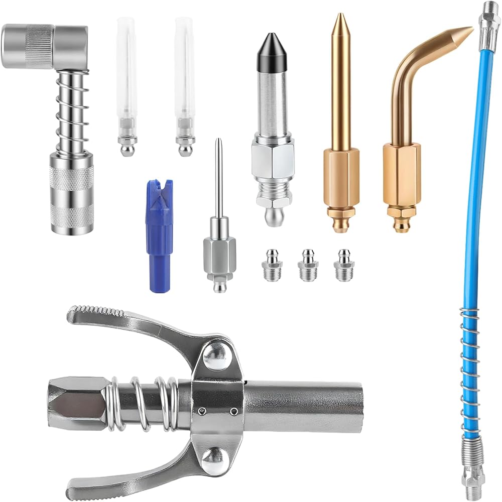 مجموعة ملحقات شاملة مكونة من 13 قطعة - تشتمل مجموعتنا الاحترافية على 13 مكونًا أساسيًا، بدءًا من قارنات الضغط العالي ووصولاً إلى فوهات الإبر الدقيقة. توفر هذه المجموعة مجموعة واسعة من الأدوات لضمان حصولك دائمًا على المكون المناسب لأية مهمة تشحيم.