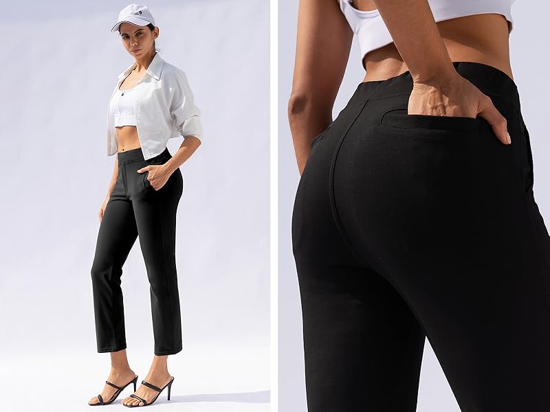 طول الكاحل: يخلق بنطال الكاحل 7/8 على الفور صورة ظلية أطول وأنحف لتبقيك بمظهر نشيط وأنيق طوال اليوم. تعتبر سراويل السفر الاختيار الأمثل لليوجا أو الكاجوال أو المكتب أو السفر أو العمل أو الجولف أو ممارسة الرياضة