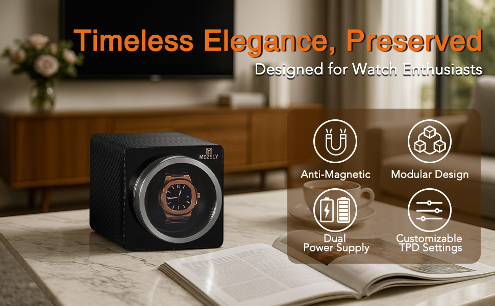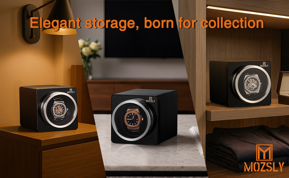 Fashion design: MOZSLY watch winders selected carbon fiber PU leather and clear acrylic glass offer both protection and elegant display, perfect as a sophisticated gift for watch enthusiasts. It seamlessly blends utility with modern design, ensuring your timepiece remains wound, ready to wear, and visually showcased at all times.