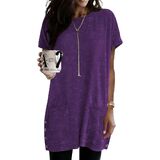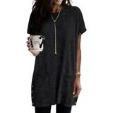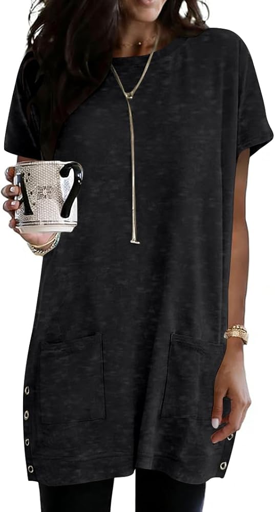 تصميم فريد: تتميز السترة النسائية خفيفة الوزن بأكمام قصيرة، ورقبة دائرية، وأزرار جانبية، وفتحة جانبية، كبيرة الحجم، وصبغة ربطة عنق، وجيبين، ونمط كاجوال أنيق، وتي شيرت أساسي عصري وكلاسيكي، تقلل من تحمل الجسم، وتظهر شكلاً جيدًا. طول هذه السترة الطويلة مثالي وفضفاض بما يكفي لتغطية شكل الكمثرى. فائقة النعومة ومريحة وقريبة من بشرتك. على محمل الجد، لن ترغب أبدًا في خلعها! قمصان طويلة للسيدات يجب اقتناؤها في ملابسك خزانة الملابس!