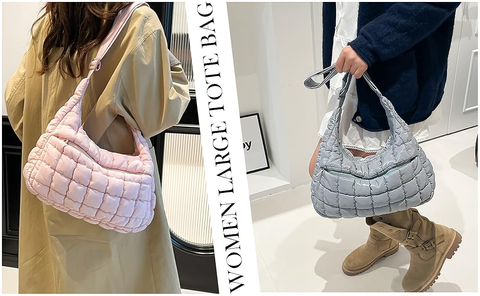 【Large Speace】This lightweight quilted hobo shoulder purse size about 13.9 x 4.0 x 11.8 inch(10.8 L), this bag features 2 open inner pockets and 1 zippered pocket to keep your small essentials organized. An additional large exterior zip pocket provides easy access to daily must-haves. Lightweight yet functional, it's perfect for shopping, travel, or anytime you want to keep your hands free.