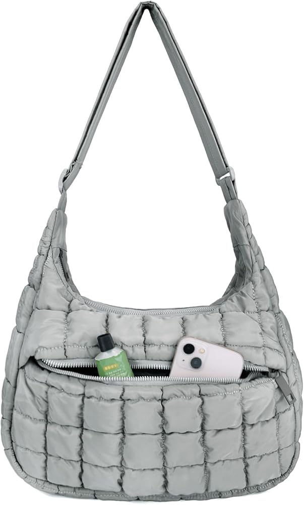 SongKedora Cute Puffy Crossbody Bag Medium Lightweight Quilted Hobo Shoulder Purse Carryall Soft Fluffy Handbag for Women