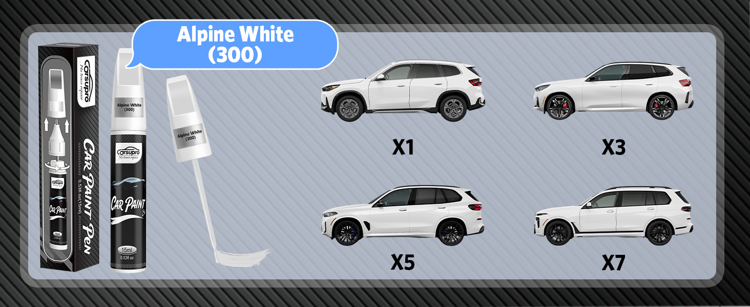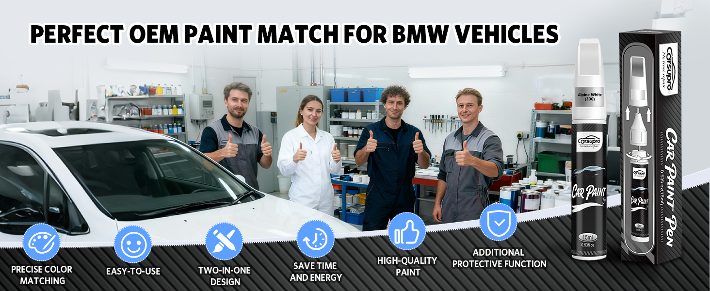 • 【لون مطابق تمامًا لسيارات BMW】مصمم خصيصًا لسيارات BMW. يمكن أن يكون لون Skyscraper Gray Metallic (C4W/C54) مطابقًا جيدًا للألوان 2/3/4/8/X2/X3/X5/X6/X7/Z4/i4. يوفر قلم الطلاء الذي يعمل باللمس إصلاحًا سلسًا وهو مثالي لإصلاح رقائق الطلاء والخدوش