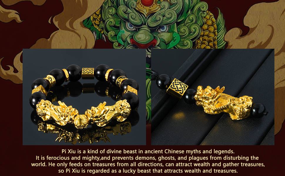 【Feng Shui Bracelet】: Pixiu is an auspicious beast in ancient Chinese mythology, symbolizing wealth and warding off evil spirits. Feng Shui bracelets protect against spiritual attacks and absorb negative energy from the environment. Feng Shui necklaces bring good luck and wealth to the wearer and ward off bad luck.