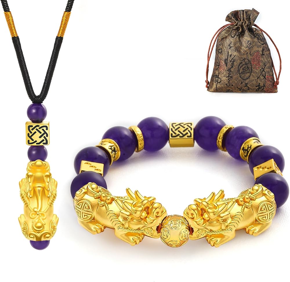 Pixiu is an auspicious beast in ancient Chinese mythology, symbolizing wealth and warding off evil spirits. Feng Shui bracelets protect against spiritual attacks and absorb negative energy from the environment. Feng Shui necklaces bring good luck and wealth to the wearer and ward off bad luck.