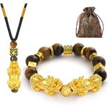 【Feng Shui Bracelet Necklace Set】: Feng Shui bracelet combines ancient Chinese mythological factors, not only fashionable and beautiful, but also has a special meaning. Complete feng shui set in necklace, feng shui bracelet and money bag. The Feng Shui necklace comes with an amulet that can help the owner to eliminate disasters and difficulties. The Feng Shui bracelet with scripture and courage ring can bring good luck and wealth to its owner, and the money bag means to bring wealth to its owner.