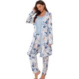 💮 DESIGN – Cozy fleece wrap robe with allover pink floral print, Blue print, roomy sleeves, front patch pockets, and a self-tie belt.