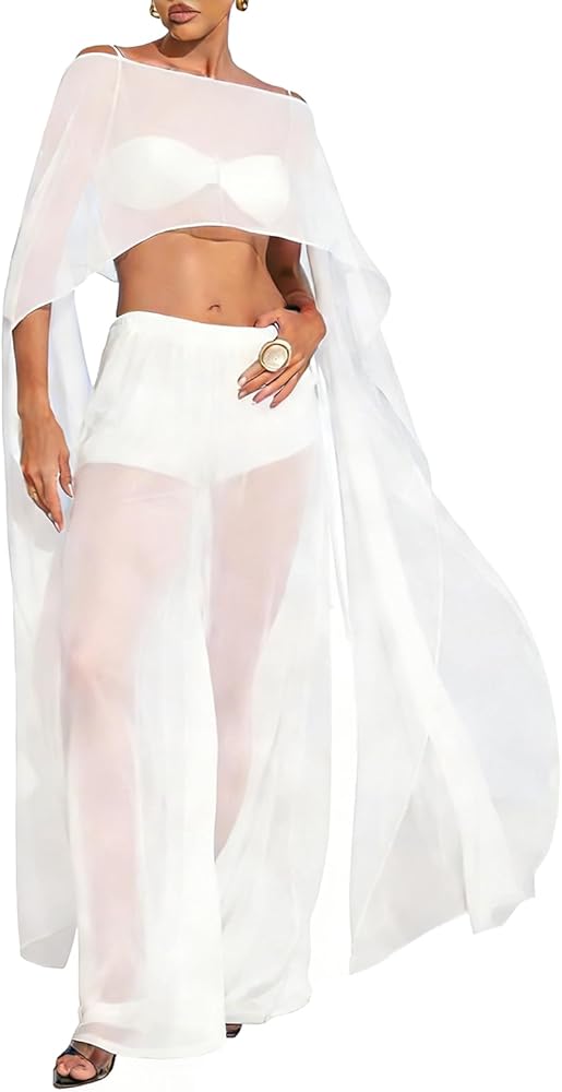 Material: Women sheer chiffon poncho capes, Crafted from 100%Polyester, its breezy feel and delicate mesh design feels comfortable and relaxed