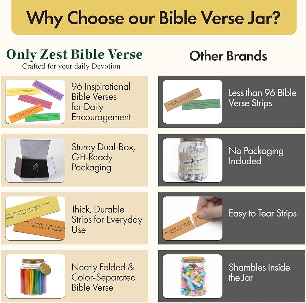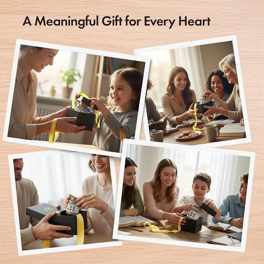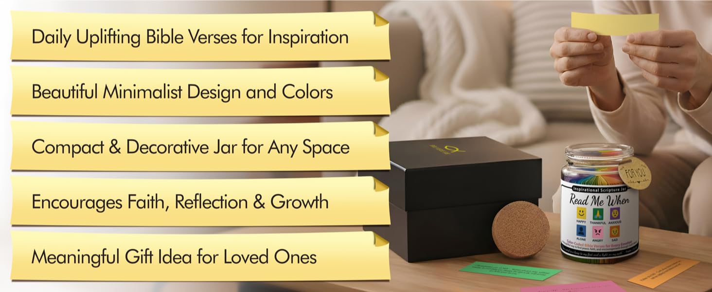ابدأ كل يوم بالإيمان: استخدم وعاء آية الكتاب المقدس اليومي هذا كطقوس صباحية أو استراحة تعبدية؛ توفر كل رسالة من جرة الكتاب المقدس الحقيقة والهدوء والوضوح عندما تكون في أمس الحاجة إليها، وهي مصدر يومي للقوة والإلهام.