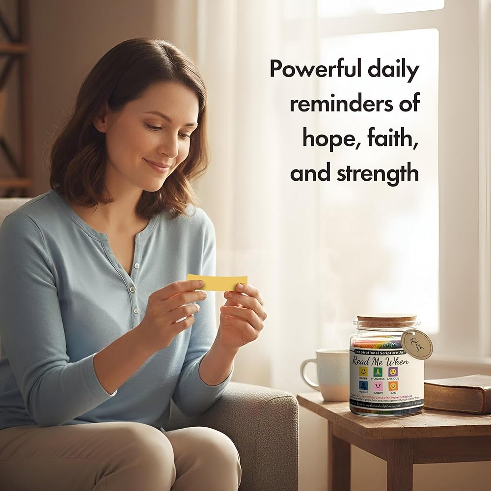 الراحة عندما تحتاجها أكثر: تتضمن هذه الجرة الآية من الكتاب المقدس للنساء 96 رسالة "اقرأني عندما" مرمزة بالألوان مصممة لرفع روحك خلال كل مزاج أو موسم، وعاء صلاة به كتب مقدسة للتشجيع والسلام والأمل.