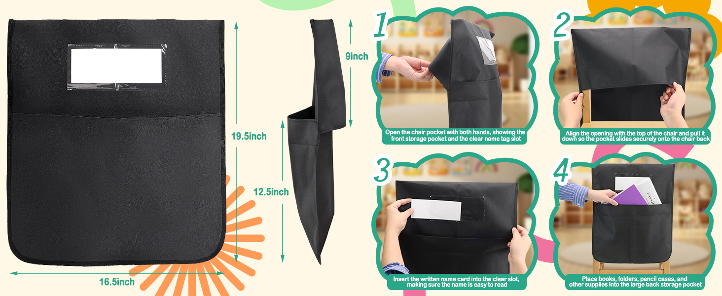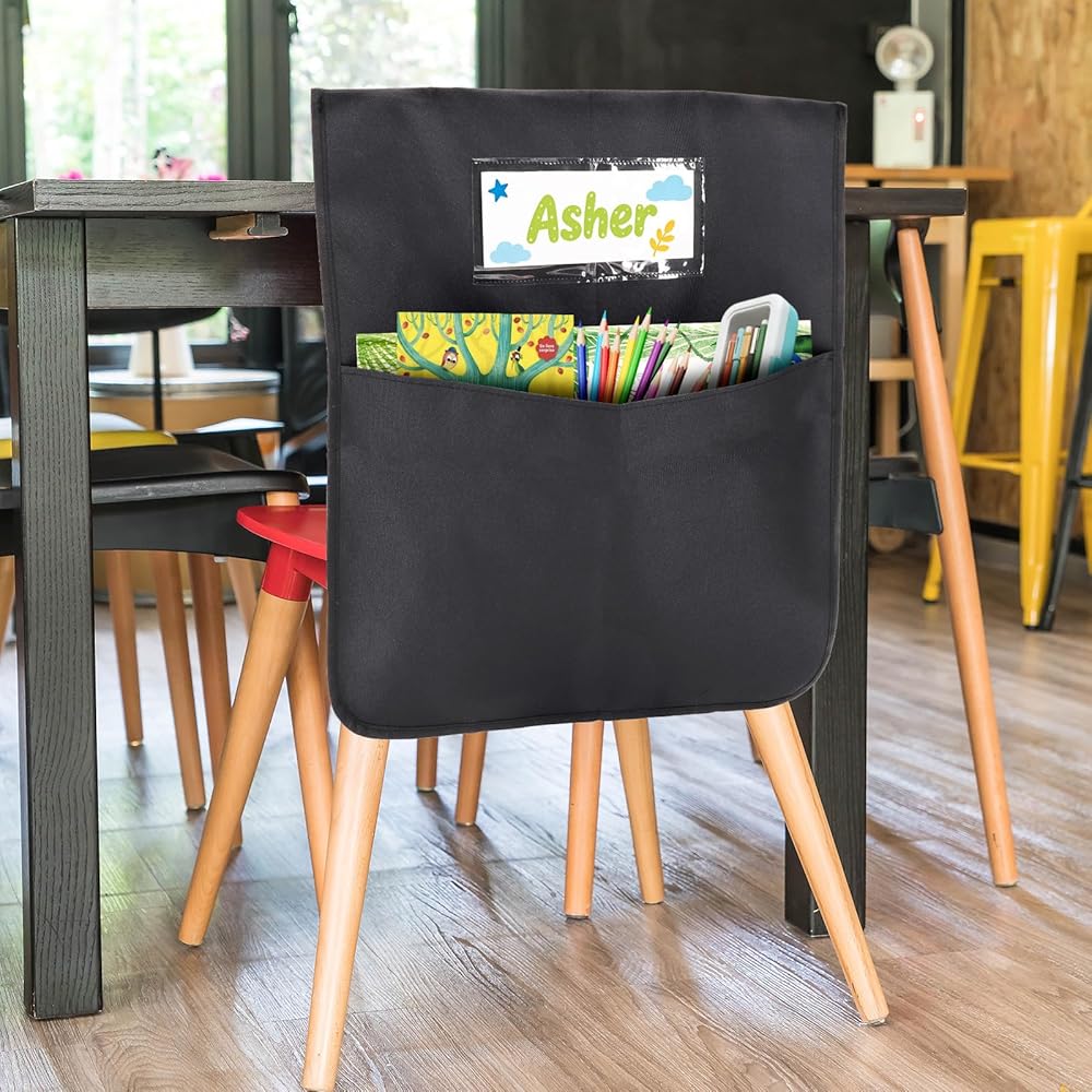 مساحة تخزين كبيرة للعودة إلى المدرسة توفر جيوب الكراسي هذه مقاس 16.5 × 19.5 مساحة تخزين واسعة للكتب المدرسية والمجلدات والدفاتر والقرطاسية، وهي مثالية للعودة إلى المدرسة والاستخدام اليومي للفصول الدراسية لطلاب رياض الأطفال حتى الصف الثالث