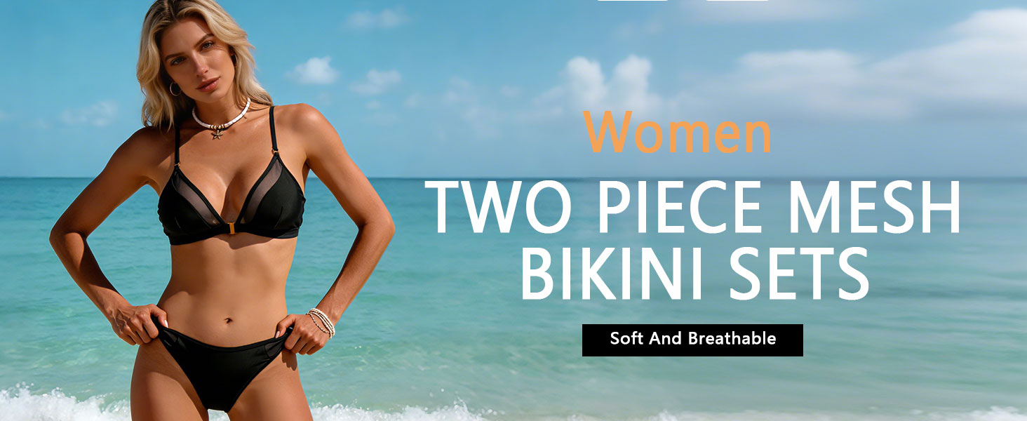المواد: هذا البيكيني مصنوع من نسيج مطاطي مزدوج الطبقة. يتميز بملمس ناعم ومطاط وصديق للبشرة وجيد التهوية بسمك عادي، مما يضمن متانة استثنائية وراحة طوال اليوم.