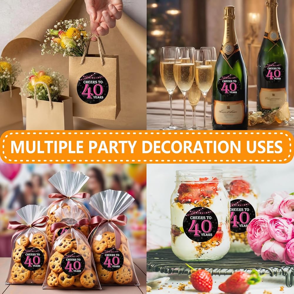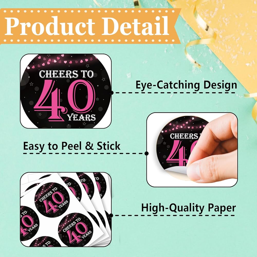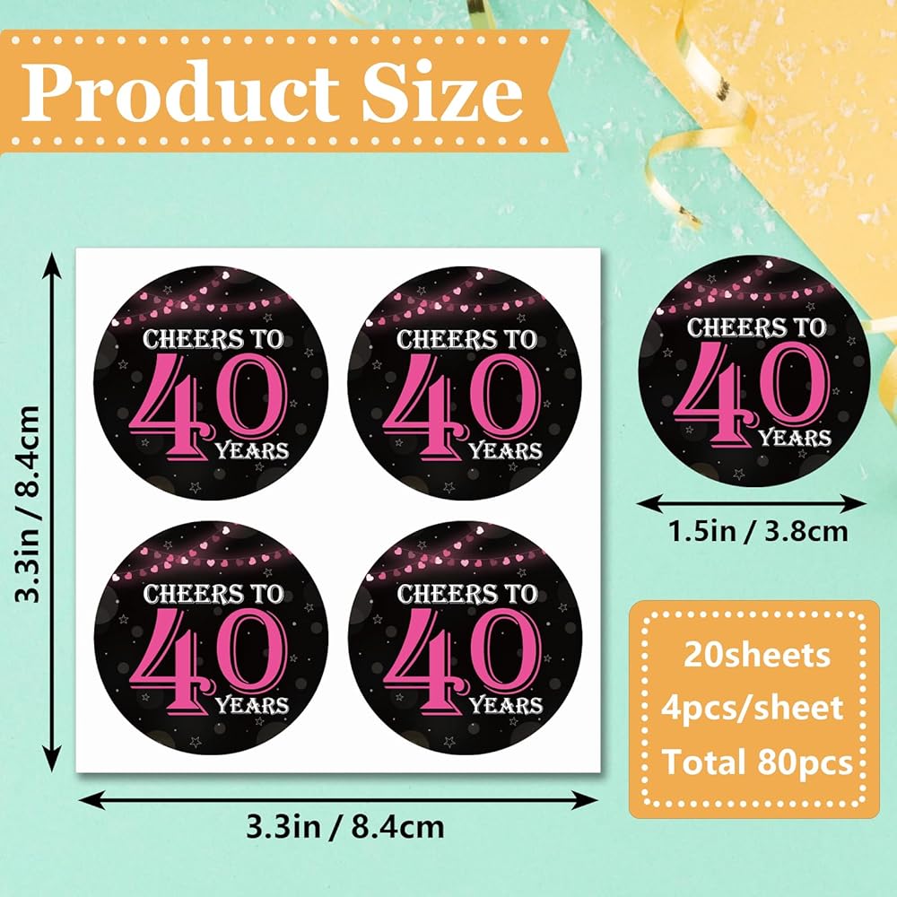 40th Birthday Stickers: Package includes 80 pcs pink birthday stickers (20 sheets of paper, each sheet has 4 pcs). The sufficient quantity can meet your different decorative demands. Great for party favors, envelope seals, gift wraps