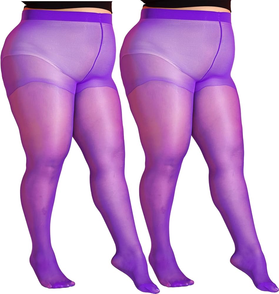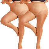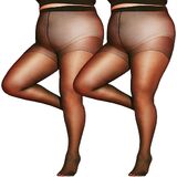 LUCKELF 2 Pairs Womens Flat Gusset Sheer Tights Plus Size -20D Upgraded Durability Pantyhose