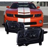المصابيح الأمامية لجهاز العرض الأنبوبي LED باللون الأسود متوافقة مع 2010 2011 2012 2013 Chevy Camaro، مجموعة المصابيح الأمامية للزوج الأيسر + الأيمن (خطوط عمودية)