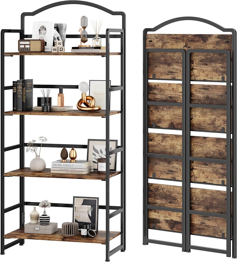 【رف تخزين متعدد الاستخدامات】رف كتب على الطراز الصناعي بإطار معدني قوي يوفر هيكلًا ثابتًا لحمل الكتب والصور والنباتات والمزيد.