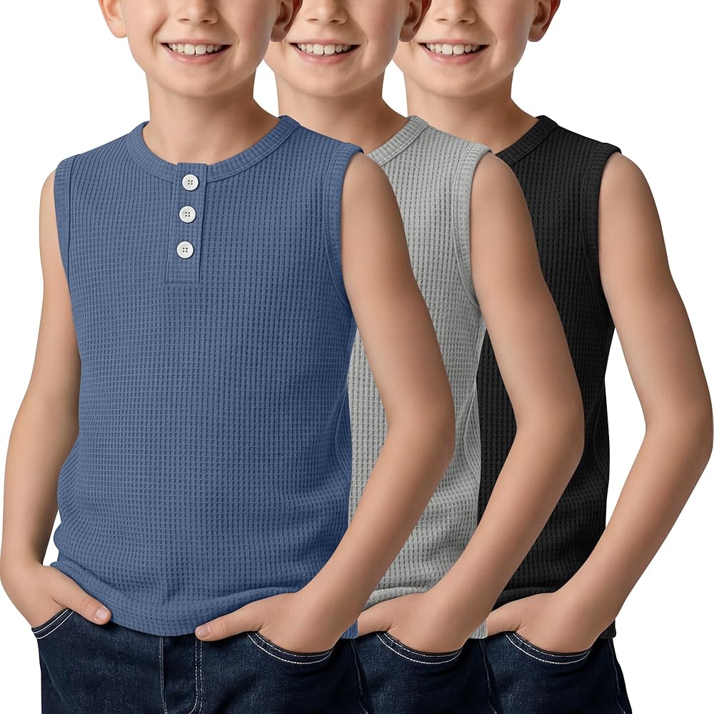 Made for all-day comfort, the soft waffle boys tank tops material and make them a comfortable choice for skin, whether worn for play or relaxation.