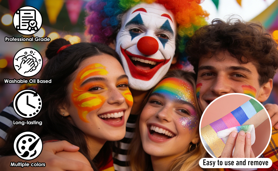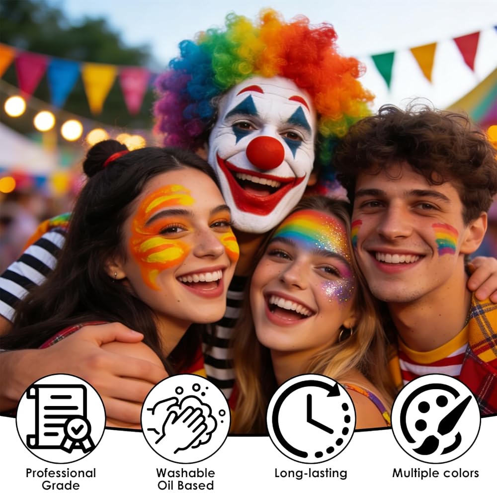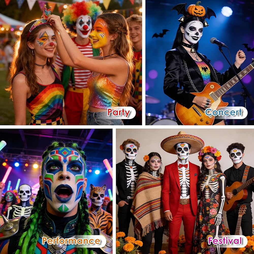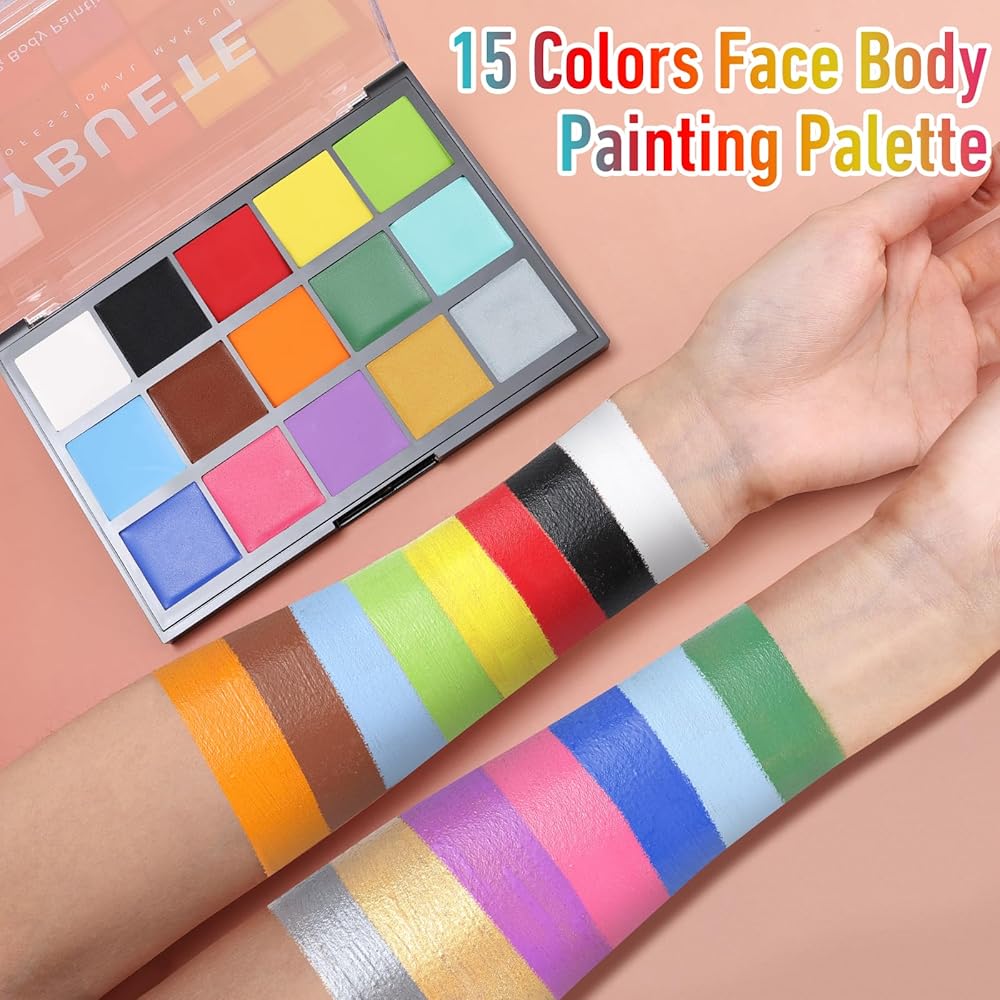【ألوان احترافية ونابضة بالحياة مع تغطية فائقة】لوحة رسم الوجه والجسم المكونة من 15 لونًا غنية ونابضة بالحياة، وتوفر تغطية استثنائية. سواء كان ذلك لتحديد الخطوط أو تلوين مساحة كبيرة، فإن ضربة واحدة تحقق التشبع الكامل، مما يضمن سطوعًا طويل الأمد مع مقاومة العرق بشكل فعال، مما يجعلها مثالية للأنشطة الخارجية الممتدة والعروض المسرحية.