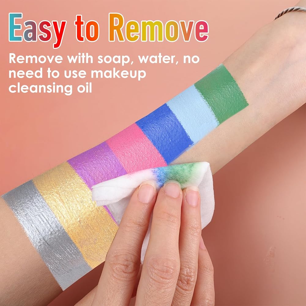 【يدوم طويلاً، ومقاوم مع ملمس مكياج رقيق】جربي ارتداءً مريحًا يدوم طويلاً يساعد على الحفاظ على حيوية عملك الفني. إنه يخلق تأثيرًا مركزًا على الجلد، مما يمنح التصميمات مظهرًا مصقولًا. يضمن اللمسة النهائية المرنة أن يتحرك الطلاء بشكل مريح مع تعابير الوجه دون الشعور بالضيق أو التشقق، مما يوفر وزنًا خفيفًا يتيح لك الاستمتاع بإبداعاتك لساعات دون إزعاج.