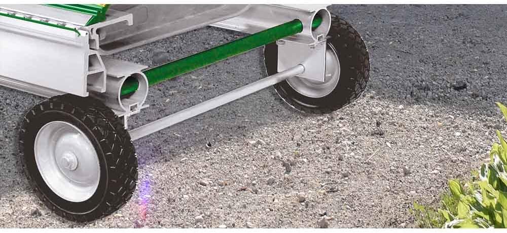 The Van Mark Wheel Kit is designed to make moving your brake around the job site easier for you. By attaching the wheel kit to one side of your Van Mark brake, you will be able to pick up the other side and easily pull or push it around from job to job, which will be more effective than just carrying it. This wheel kit also works for rolling off the back of a trailer or truck and onto the stand at the job site. The main difference between the two wheel kits is part # 3035 has a longer axle for a wider throat depth brake.