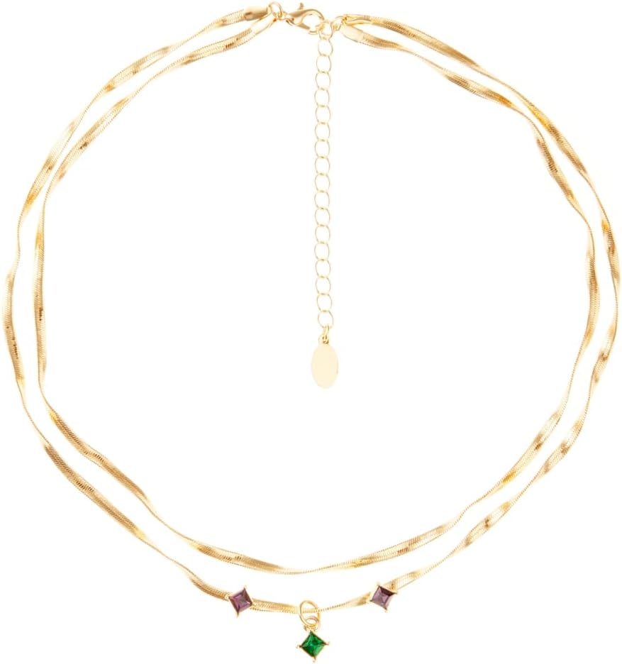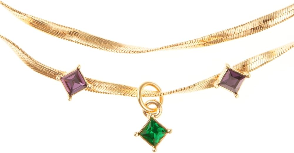 The 8 Other Reasons Wicked Elphaba Twisted Double Snake Chain Necklace is a beautifully designed statement accessory that blends modern elegance with vibrant crystal detailing. Crafted to stand out while maintaining a refined appearance, this necklace features a sleek twisted chain design and colorful crystal accents that add personality and charm to any outfit. The elegant structure makes it a stylish addition to both everyday fashion and special occasion looks. One of the most distinctive features of this necklace is its twisted double snake chain design. The dual chain structure wraps gracefully around the neckline, creating a layered effect that enhances the overall visual appeal. The smooth snake chain texture reflects light beautifully, giving the necklace a polished and sophisticated shine. This design creates a modern jewelry look that feels both fashionable and timeless. At the center of the necklace is a multi-colored crystal centerpiece that adds vibrant sparkle and artistic detail. The colorful crystal accents create a striking focal point that naturally draws attention while complementing the warm gold tone of the chain. These decorative crystals introduce subtle color variations that make the necklace visually dynamic and unique. The necklace is crafted from durable brass with a 14K gold-plated finish, offering a luxurious shine and refined appearance. The gold plating enhances the elegance of the piece while helping maintain its stylish look even with regular wear. This durable construction ensures the necklace remains a beautiful accessory for long-term use.