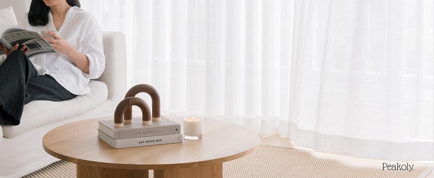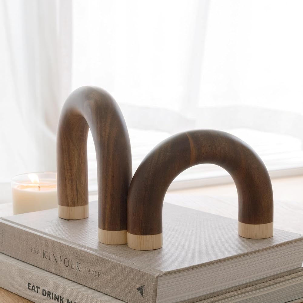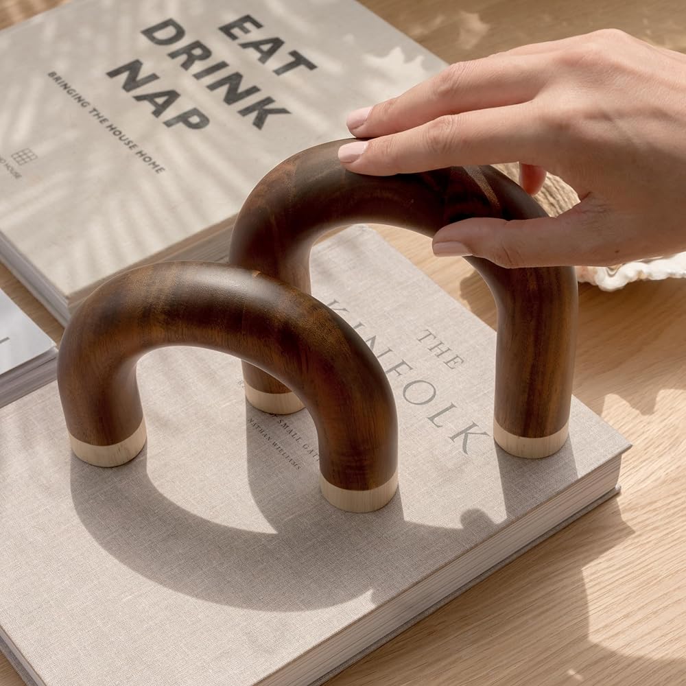 أسلوب مثل المحترفين - ضع أقواس الديكور الخشبي فوق كتب طاولة القهوة المحايدة والمغلفة بالكتان أو ضعها بجانب مزهرية سيراميك ترابية غير لامعة. طريقة سهلة لتصميم ديكور منزلك العصري البسيط، أو ديكور الأرفف أو ديكور رف المكتب.