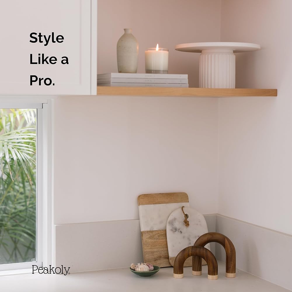 قم بتوحيد لوحة الخشب الخاصة بك - قم بتنسيق لمسات ديكور الرف الخاص بك للحصول على منزل منسق بشكل احترافي. تعمل هذه المجموعة ذات اللون المزدوج كجسر مرئي بين الأثاث الفاتح والداكن، مما يضمن أن ديكور رف الكتب الخاص بك يبدو متماسكًا عن قصد.