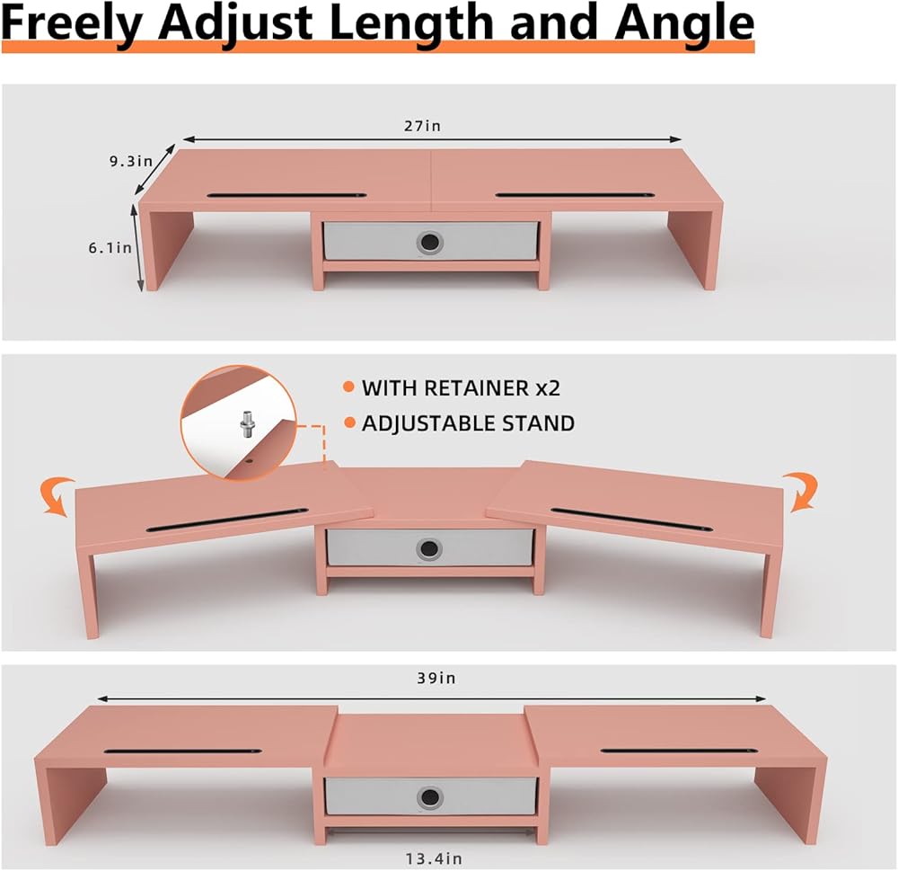 • 【DUAL MONITOR STAND DIMENSIONS】The size of the PC Stand Riser is 27-39”L X 9.3”W X 6.1”H.
