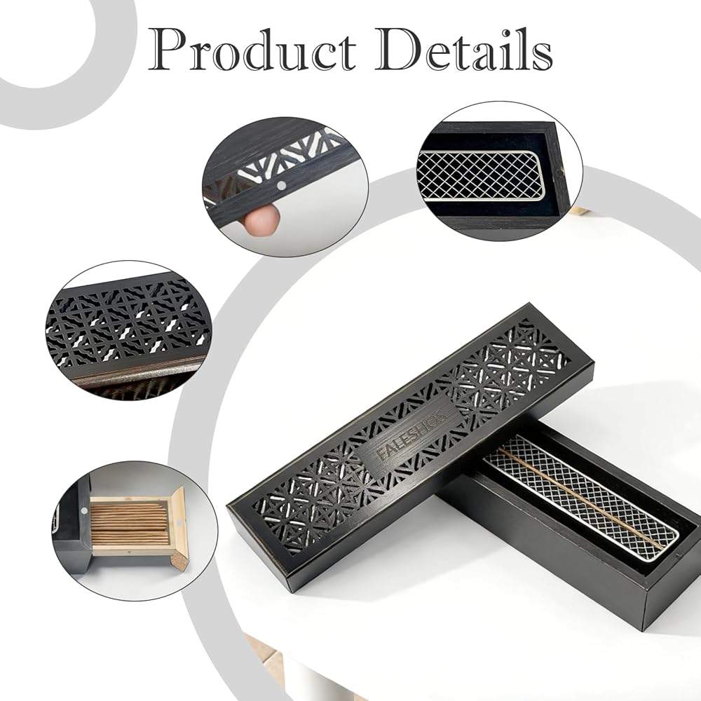 • Natural Wood & Burn-Proof Construction Crafted from beautiful and sturdy natural wood with a stainless steel frame and a built-in burn-resistant pad. This durable design ensures complete burning of incense sticks through the hollow frame and offers long-lasting safety for your surfaces.
