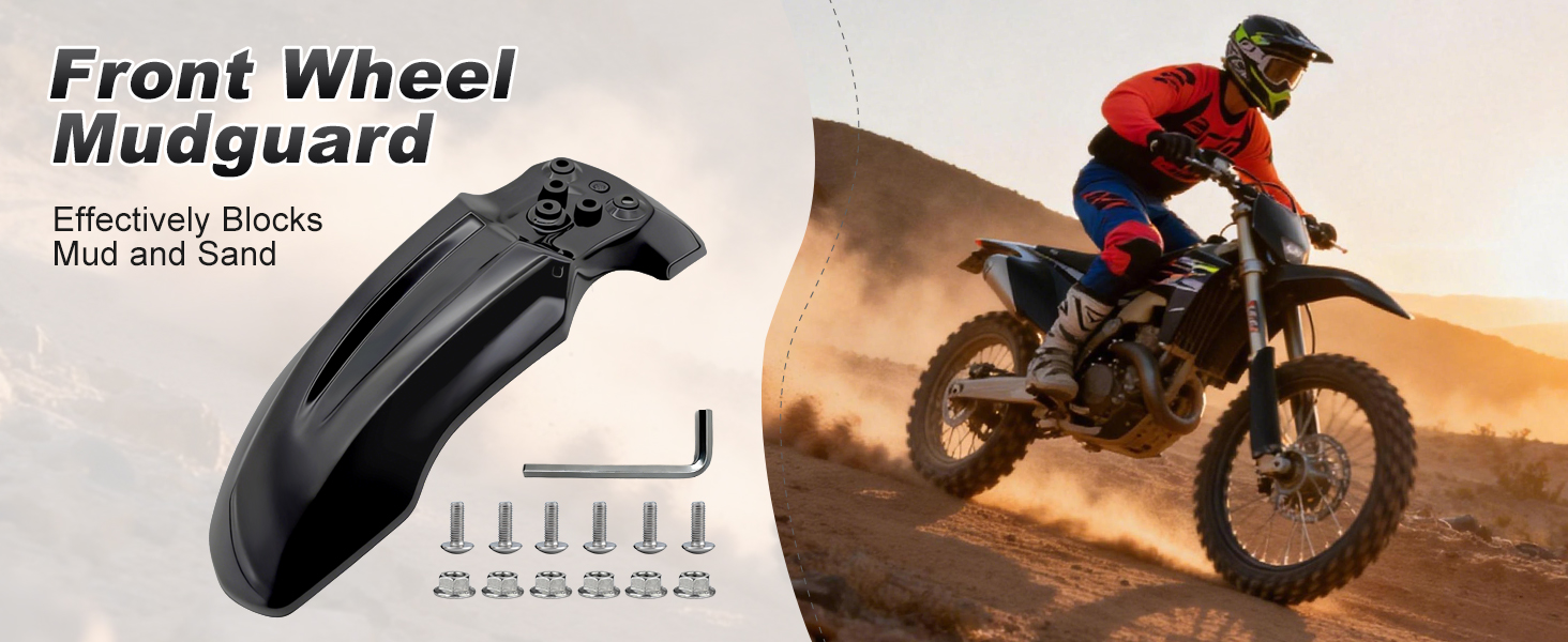حماية من الرذاذ والحطام على الطرق الوعرة: تم تصميم واقي الطين الأمامي الفاخر هذا خصيصًا للرحلات الخارجية القاسية، ويوفر تغطية كاملة للمنطقة الحرجة لحماية دراجتك الترابية من الطين والحطام المتطاير والخدوش القبيحة. حافظ على نظافة دراجتك واستمتع بقيادة أكثر راحة وتركيزًا - حتى في الطقس الممطر والظروف الصعبة على الطرق الوعرة.