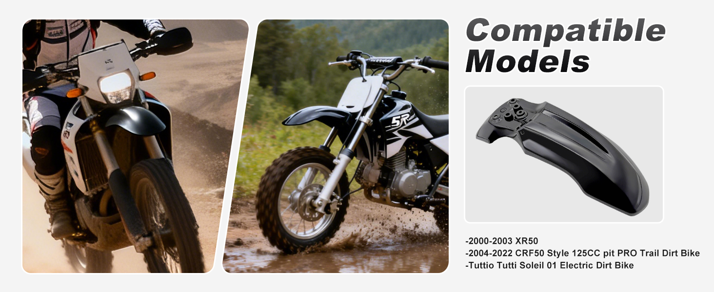 توافق واسع ودقيق للطراز: حاجز العجلة الأمامية هذا متوافق تمامًا مع الدراجة الترابية الكهربائية Tuttio Tutti Soleil 01، 2000-2003 XR50، 2004-2022 CRF50 طراز 125CC Pit PRO Trail Dirt Bikes. ملاءمة عالمية لكل من الدراجات الترابية التي تعمل بالغاز والكهرباء - يرجى التأكد من مواصفات دراجتك النارية قبل الشراء للحصول على تطابق دقيق.