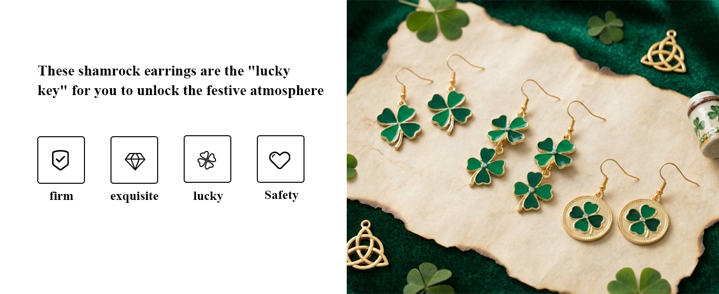 احتفل بعيد القديس باتريك: احتضن حظ الأيرلنديين مع هذه الأقراط الأيرلندية التي تعرض رمز أقراط البرسيم الأيقونية. هذه الأقراط النسائية لعيد القديس باتريك يجب اقتناؤها لأي شخص يبحث عن دمج مجوهرات نبات النفل في زي عيد القديس باتريك أو النمط اليومي، مما يجعلها إكسسوارات مثالية لعيد القديس باتريك لإكمال مظهرك.