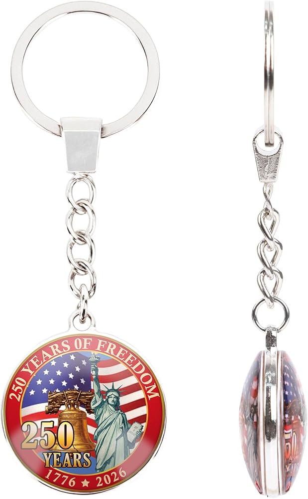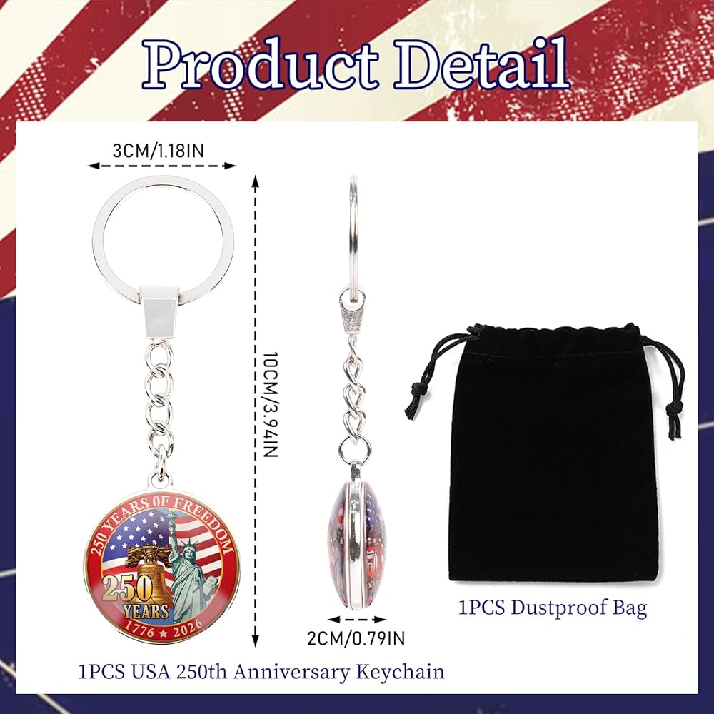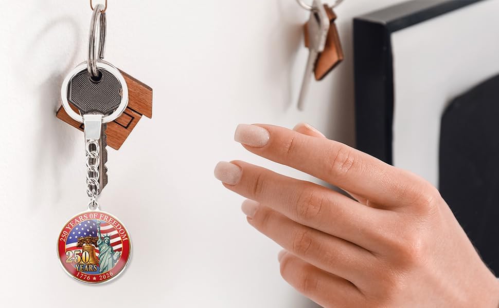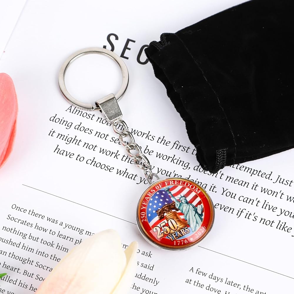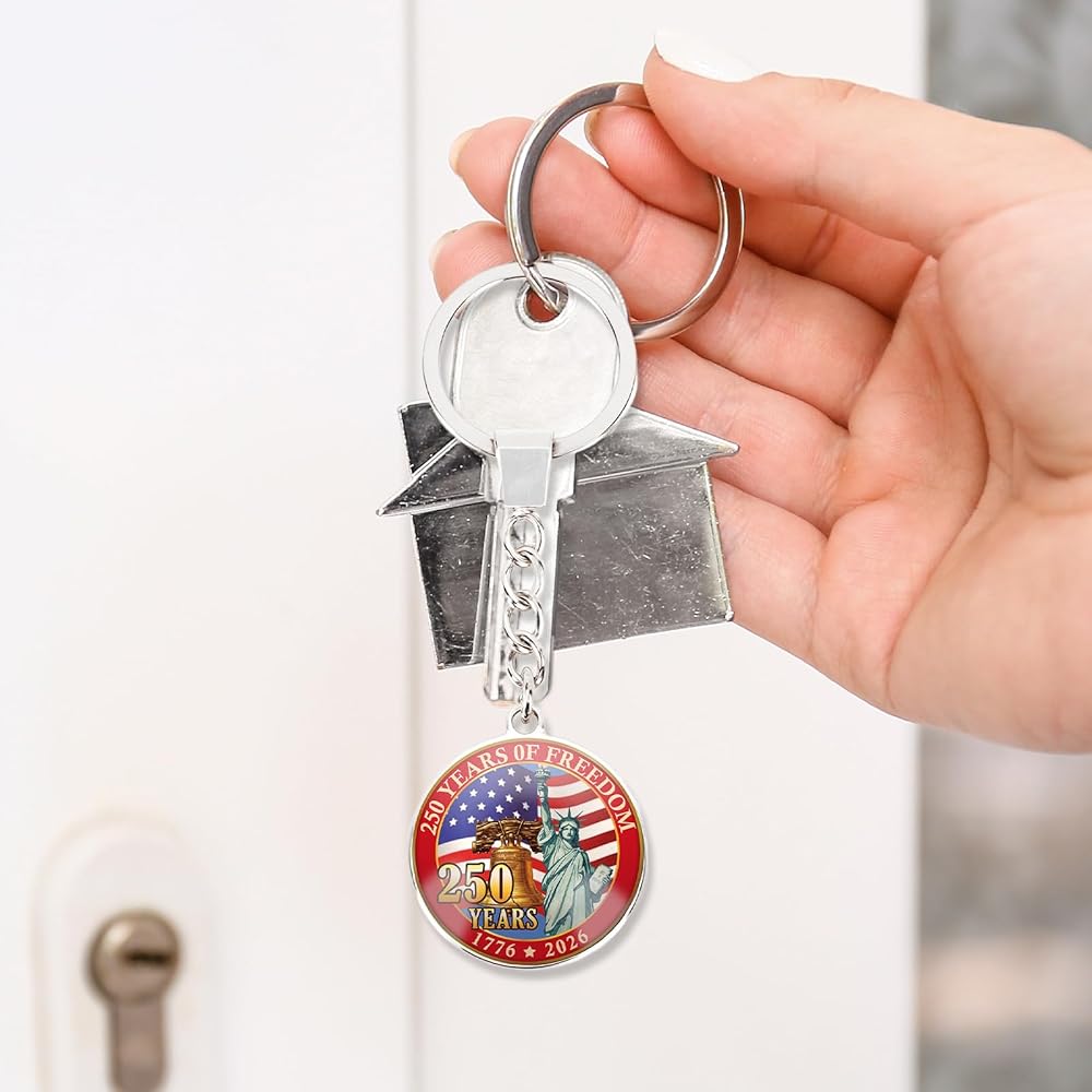 سلسلة مفاتيح الذكرى السنوية الأمريكية: إحياء ذكرى 1776-2026 معلم استقلال الولايات المتحدة: تمثال الحرية (يجسد الحرية)، وجرس الهاتف العتيق (تكريم الابتكار)، والعلم الأمريكي الكلاسيكي (يمثل حب الوطن). مقتني فخور للولايات المتحدة رقم 250