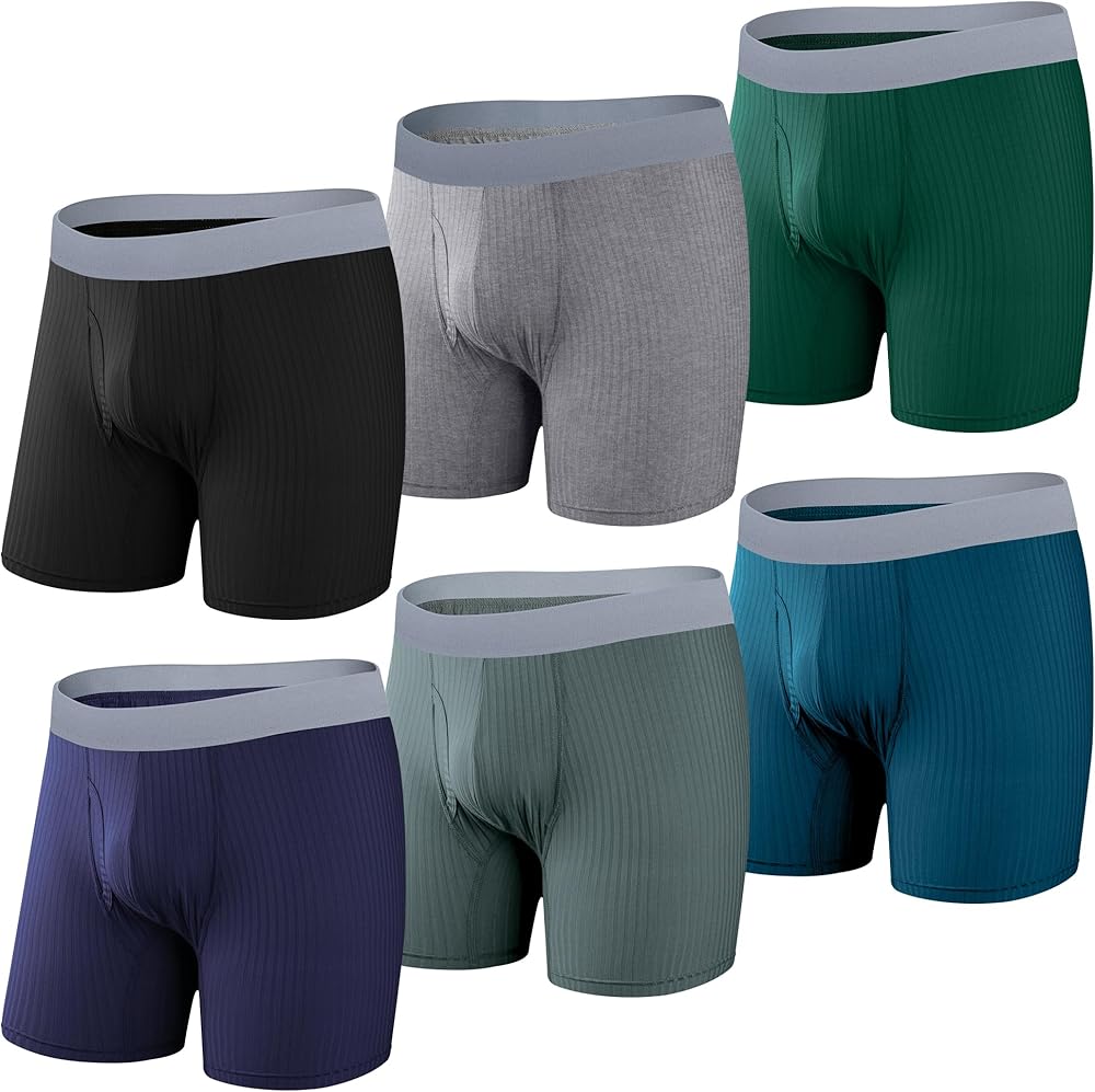Breathable Pinstripe Comfort:Designed with a refined pinstripe knit texture, these boxer briefs promote steady airflow and wick away moisture quickly while offering flexible side stretch for a perfect fit and lasting freshness.