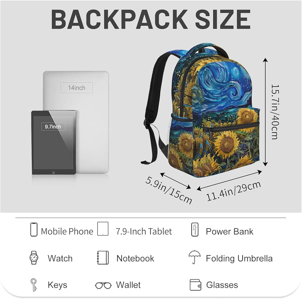 هدايا حقيبة ظهر عباد الشمس للفتيات والأولاد والأطفال والمراهقين، حقائب ظهر للسفر وحقيبة كمبيوتر محمول، وحقيبة كتب، وحقيبة ظهر فنية مليئة بالنجوم لحقل عباد الشمس للمدرسة، والعمل، والمغامرات الخارجية