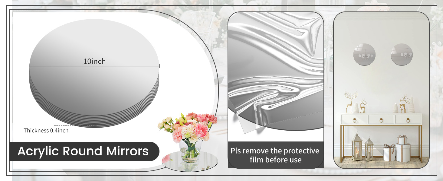 مصممة لتدوم طويلاً: هذه المرايا المستديرة للقطع المركزية مصنوعة من مادة أكريليك عالية الجودة، وخفيفة الوزن ومقاومة للكسر، ويمكنها الحفاظ على الاستخدام والسطوع على المدى الطويل. يمكن إزالة البقع الناتجة أثناء استخدام المنتج بسهولة عن طريق مسحها بالماء.