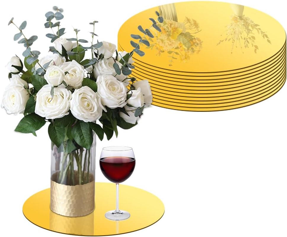 مجموعة من 12 قطعة مركزية للمرايا الذهبية: سوف تحصل على مجموعة مكونة من 12 قطعة من قطع مركزية للمرايا من الأكريليك لتزيين الطاولة. انعكاس مرآة عالي الوضوح لعرض رائع لبهجة العطلات