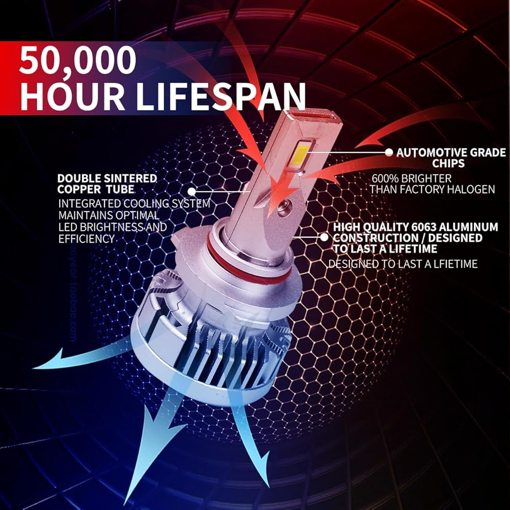 • 【أكثر سطوعًا بنسبة 600% من الهالوجين】- رقائق عالية الجودة للسيارات مع 22000 لومن حقيقي لكل زوج، درجة حرارة لون 6000 كلفن. يوفر تصميم نمط الشعاع الذي يركز على المصنع نطاق إضاءة أوسع وأبعد يصل إلى 6 مرات أكثر سطوعًا من لمبة الهالوجين الأصلية. مصنوعة لتجميع المصنع الخاص بك.