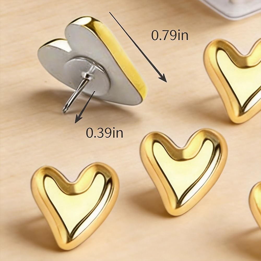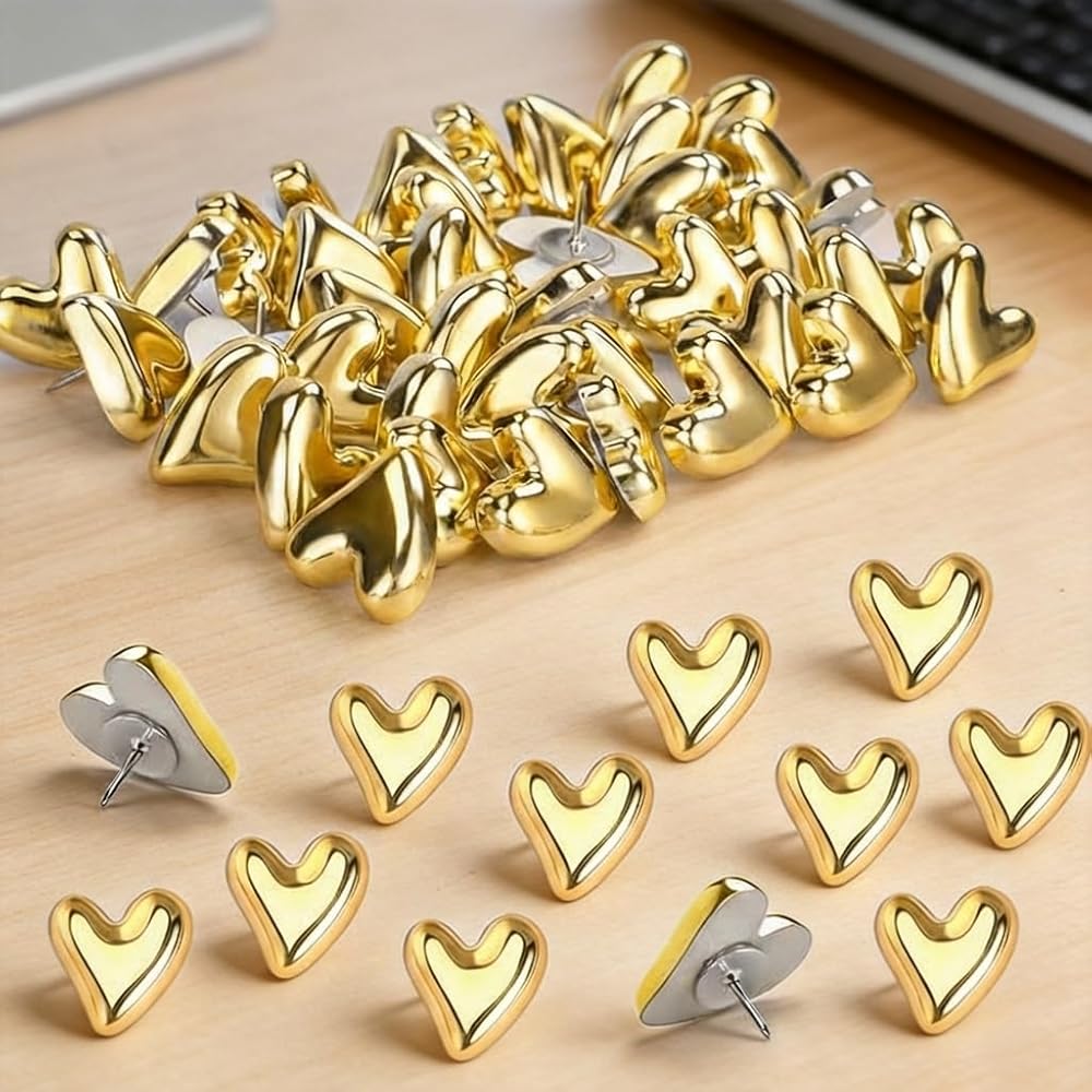 • 【ADORABLE HEART DESIGN】Add a touch of love and warmth to your workspace with these charming heart-shaped push pins. Unlike flat tacks, these feature a puffy, heart design with a brilliant gold-tone finish. They are for creating an aesthetic, personalized bulletin board that stands out from the dull, traditional office look