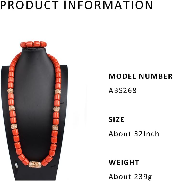 يبلغ طول القلادة حوالي 32 بوصة، والوزن الإجمالي حوالي 239 جرامًا، وسوار واحد حوالي 44 جرامًا.