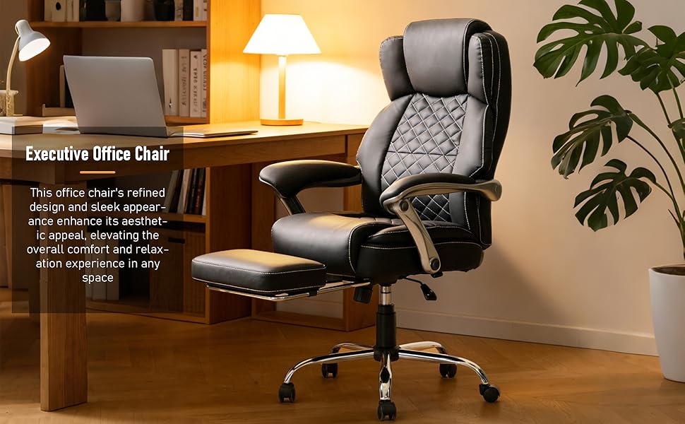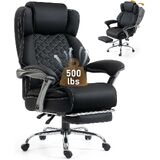 كرسي مكتب DYHOME بوزن 500 رطل مع مسند للقدمين، كرسي مكتب مريح كبير وطويل القامة مع دعم قطني ووسادة زنبركية للجيب، كرسي كمبيوتر عالي الظهر، بولي يوريثان، وسادة مقعد أكثر سمكًا (أسود)