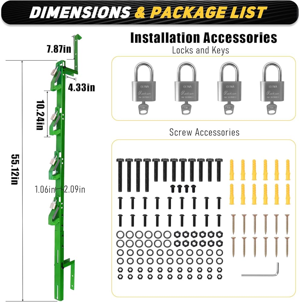 رف آكل الأعشاب ذو 4 أماكن مناسب لجدران المقطورة المفتوحة والمغلقة والمناظر الطبيعية لشاحنة الأعشاب مع 4 قفل - أخضر