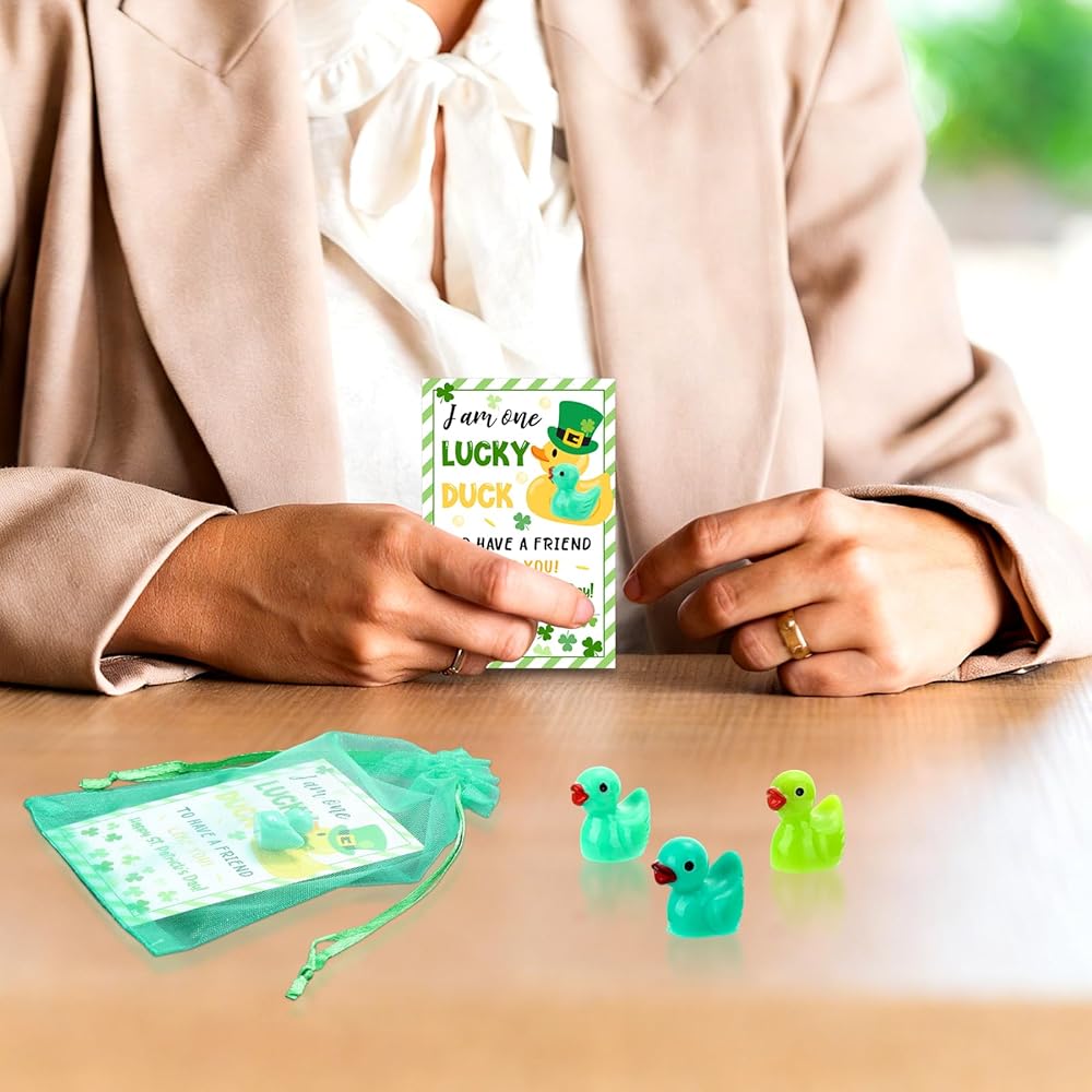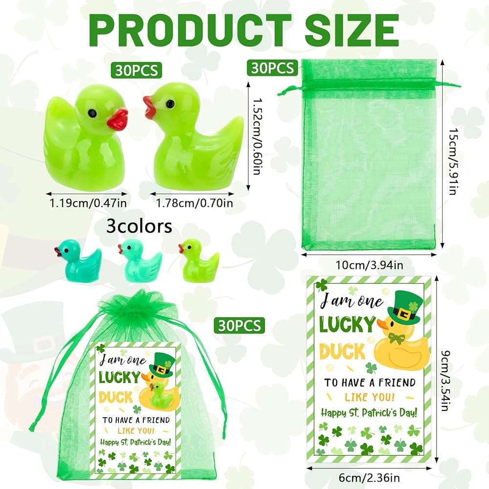 These St. Patrick's Day mini resin ducks gifts stand out in their cute vibrant Irish-inspired green shades design for the St. Patrick's Day; Shamrock represents good luck and is a traditional element of the Irish Festival, it fits perfectly with the festive theme