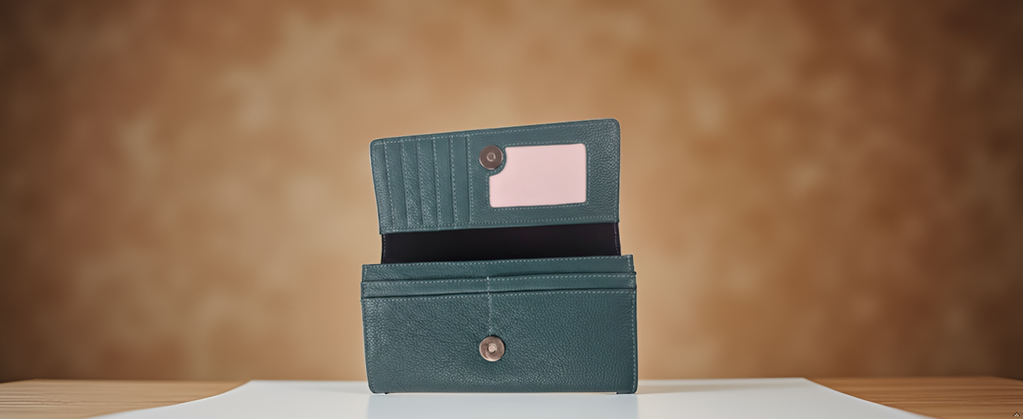 تصميم واسع ومنظم: يتضمن 9 فتحات لبطاقات الائتمان، ونافذة شفافة لبطاقة الهوية، وحجرتين كاملتين للفواتير، وجيب مركزي آمن بسحاب