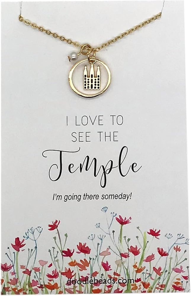 Temple Necklace - Temple Charm Gold Temple Jewelry - Temple Necklace with 16-18" chain creatively carded with "I Love to See The Temple"