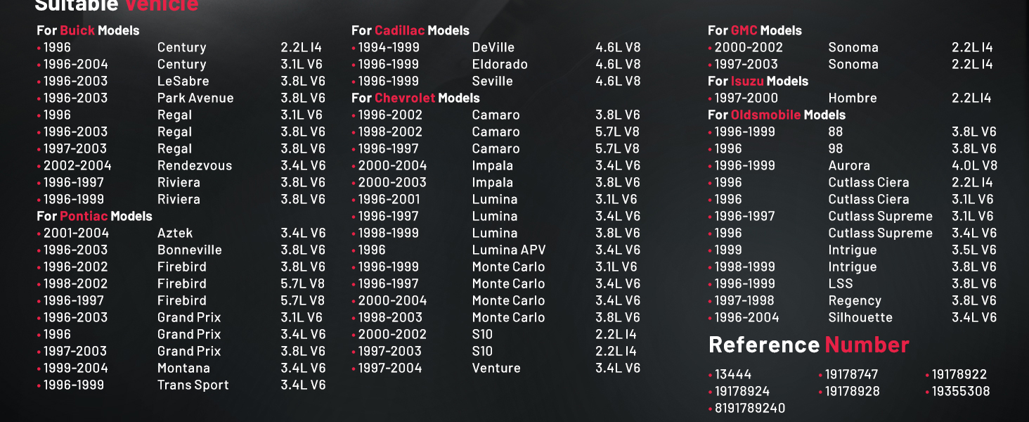 نماذج قابلة للتطبيق - مستشعر O2 متوافق مع Buick Enclave 2012-2017، متوافق مع Cadillac ATS All 3.6L 2013-2015، 2016-2018 ATS V 3.6L، 2005-2014 CTS All 2.8L 3.0L، متوافق مع Cadillac 2005-2015 CTS All 3.6L، متوافق مع كاديلاك 2015-2018 CTS V 3.6L، متوافق مع كاديلاك SRX All 3.6L 4.6L 2004-2009، متوافق مع 2005-2011 كاديلاك STS All 3.6L 4.6L، يرجى الرجوع إلى صفحة الصور والتفاصيل